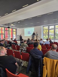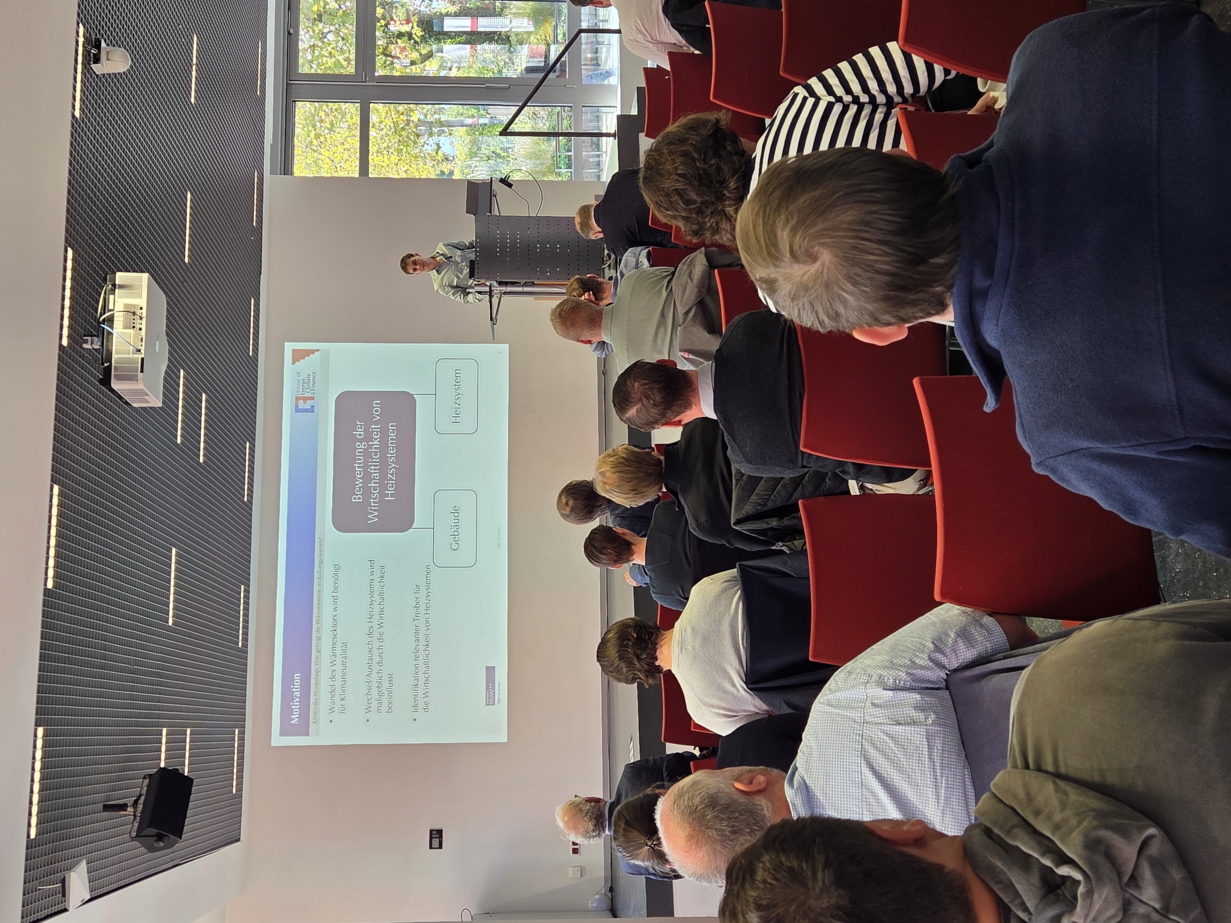 Mit etwas Verspätung ging es in eine kurze Kaffeepause, bevor Daniel Brunsch und Tobias Ader (UDE) erste Projektergebnisse sowie das im Projekt entwickelte Online-Tool zur Wirtschaftlichkeitsberechnung von Heizungssystemen vorgestellt haben. Auch dieser Vortrag und vor allem das Tool kamen gut an, sodass auch hier im Anschluss fleißig diskutiert wurde! Die Anmerkungen und Fragen zogen sich bis in die Mittagspause.
