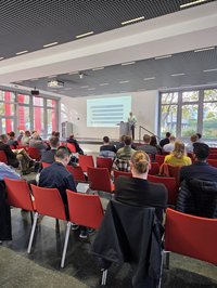 Etwa 50 Akteur:innen aus Wissenschaft und Praxis fanden sich in den Räumlichkeiten der Universität Duisburg-Essen ein, um am Workshop teilzunehmen. Prof. Christoph Weber begrüßte die Teilnehmer:innen und gab einen kurzen Einblick in aktuelle Herausforderungen auf dem Weg zur Klimaneutralität bis 2045. Es folgten Vorträge zu Strategien und Maßnahmen für die Wärmewende im Gebäudebestand (Dr. Pawel Naliwajko, Vonovia SE) und zur Kommunalen Wärmeplanung in Duisburg (Katja Kleegräfe und Stefan Foraita, DVV mbH). Beide Vorträge ließen viel Spielraum für Fragen, sodass angeregte Diskussionen zwischen den Vortragenden und den Teilnehmer:innen entstanden.